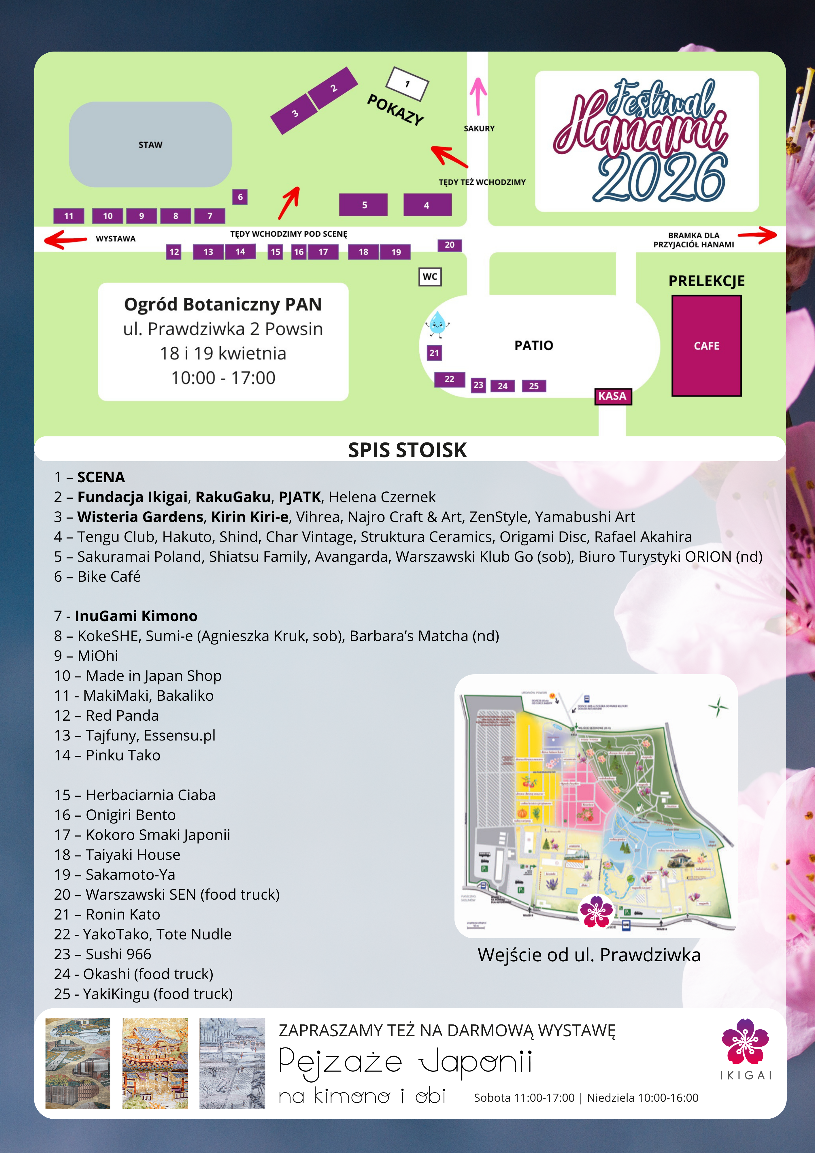W 2023 roku Fundacja nawiązała współpracę z PAN Ogrodem Botanicznym w Powsinie, który przyjął nasz Festiwal jako punkt kulminacyjny Miesiąca Japońskiego pod honorowym patronatem Ambasady Japonii. Dzięki współpracy z Ogrodem Festiwal zyskał nowy wymiar nawiązujący do tradycyjnych japońskich pikników pod sakurami.